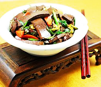 5、青蒜胡萝卜鸭血中的胡萝卜还含较多的钙、磷、铁等矿物质。不少专家研究证明,每天吃两根胡萝卜,可使血中胆固醇降低10%~20%;每天吃三根胡萝卜,对预防心脏疾病和肿瘤有奇效。