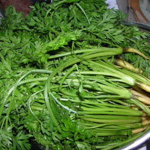 在日本的超市,买胡萝卜大家都喜欢买带萝卜叶子的胡萝卜吃,很少有剪去萝卜叶子在那出售的,没人要。胡萝卜苗即好吃,又有营养,尤其是包水饺,也可以烫过后做凉拌菜。胡萝卜苗也可药用,功效 理气止痛;利水主治脘腹痛、浮肿、小便不通、淋痛等。