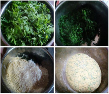 食材:胡萝卜苗 150克、面粉 200克、小米面 100克、白糖 15克、酵母 4克。