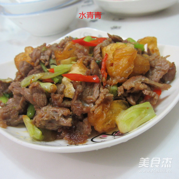 一天早上油条买多了,没吃完。中午炒牛时加进了牛肉里,试做的牛肉炒油条。 主料 牛肉300克 油条1根 芹菜1棵 辅料 盐2克 酱油2克 茶籽油15克 孜然粉2克 鸡精2克 米椒2个 牛肉炒油条的做法 1.备牛肉 2.牛肉切丝或片用生抽或酱油腌制 3.油条 4.切点芹菜,辣椒 5.炒牛肉 6.大火快炒 7.放进芹菜辣椒 8.炒匀 9.放盐入味 10.撒上孜然粉 11.放进油条 12.撒上鸡精 13.装盘 烹饪技巧 牛肉可先用生粉,生抽腌制十分钟