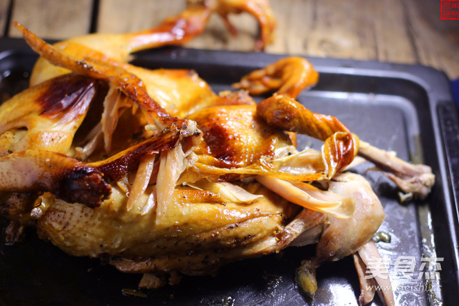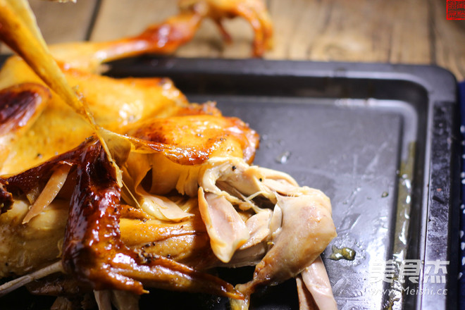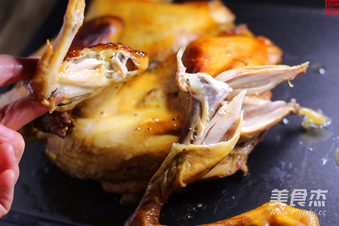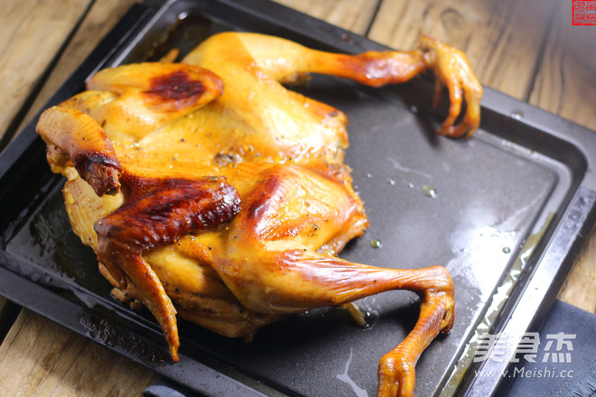 10.把烤鸡送入烤箱,烤盘铺锡纸放在最下层接油,上下温度180度,一个小时。