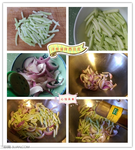 1、要让西瓜皮吃起来口感爽脆,需要注意两点:第一要用盐腌渍去除多余的水分,第二与洋葱混合并调味的过程要快速,也正因此我说是溜拌,也可以把西瓜皮入炒锅理解为只是为了跟洋葱混合并拌入味,一定不能炒久了,否则西瓜皮炒熟了就不脆了;