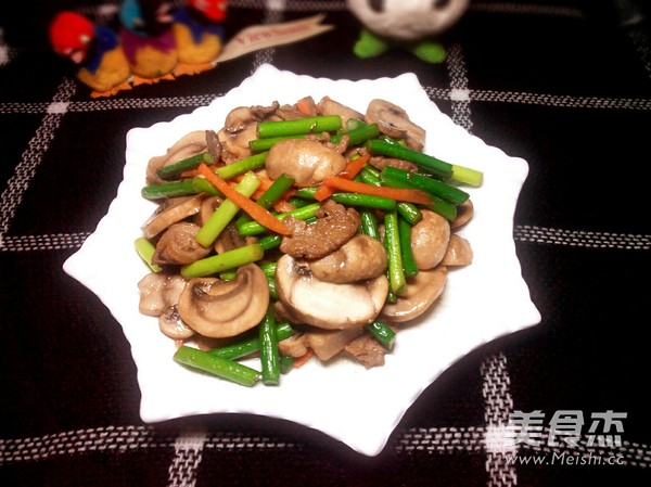 蒜苔是很好的功能保健蔬菜,不仅营养丰富,还有很好的药用保健功效。蒜苔的营养成分异常丰富,含有丰富的磷、硫、钾等矿物质及多种维生素,能促进血液循环,有健胃、去寒、杀菌、驱病、健身之功效。 主料 口蘑200克 蒜苔250克 猪肉50克 辅料 花生油10毫升 酱油10毫升 盐1克 胡萝卜20克 蒜苔炒口蘑的做法 1.准备食材:口蘑用水焯一下后切片,猪肉用淀粉和少许酱油腌制一会 2.热锅放油,放入猪肉 3.翻炒至变色 4.放入口蘑片翻炒几下 5.放入蒜苔翻炒几下 6.放入酱油 7.放入胡萝卜丝 8.加入少许盐炒匀即可 9.营养美味哟 烹饪技巧 猪肉提前腌一会便于入味,口蘑焯后再切片。
