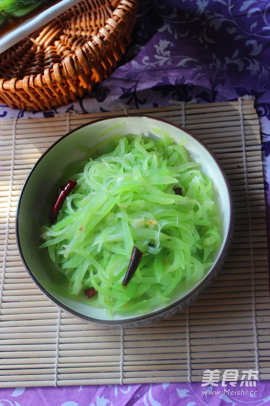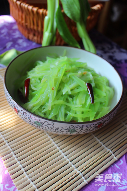 1、切莴笋丝切尽量切得细点,太粗会影响口感。 2、焯水后,用冷水过,是防止莴笋走色,而且会吃起来更脆,口感会更好。 3、放入干辣椒是能让清清的莴笋丝吃起来更好,如果不喜欢放辣椒的童鞋也可以不放。