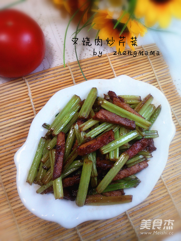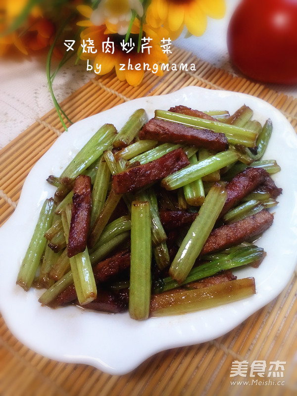 叉烧肉本来是熟的,芹菜炒至断生即可。