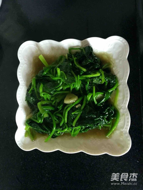 3.加入菠菜炒,3分钟左右至颜色略深,加盐调味即可。