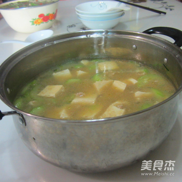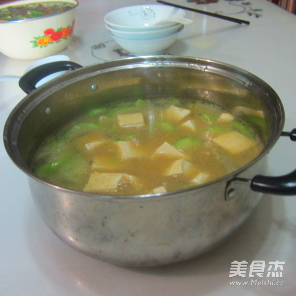 豆腐是家庭餐桌上常吃的食物,属绿色健康食品。深受人们的喜爱,是生熟皆可,老少皆宜,益寿延年的佳品。豆腐可搭配多种食材,做出各种不同的美味菜肴。今天用豆腐,丝瓜做的汤菜。放了点肉末提鲜,更营养更好吃。