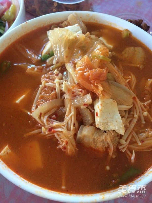 6.热腾腾的泡菜汤完成了。(按自己口味可以加金针菇或午餐肉的哦~~~)