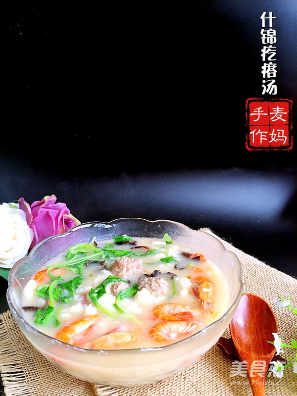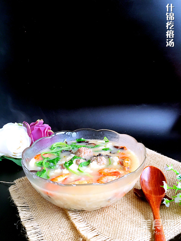 高粉150克 番茄1个 鸡蛋1个 香菇(干)4个 黑木耳5克 河虾150克 青菜100克 肉丸4个