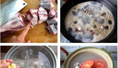 番茄砂锅牛尾汤的材料:牛尾1000g,胡萝卜200g,西红柿300g,盐适量,胡椒粉适量,姜数片 番茄砂锅牛尾汤的做法: 1、将牛尾,胡萝卜,西红柿清洗干净,牛尾顺着骨节斩成小段。 2、锅里煮开水,放入牛尾,用大火煮开,撇去浮沫,捞出牛尾。 3、锅里重新加入清水,放入牛尾、生姜片,用大火煮开然后转为小火炖1小时。 4、等到牛尾肉煮熟后,捞起牛尾到砂锅里,加入胡萝卜块和西红柿,用小火炖烂。 5、最后加入胡椒面、香菜段和精盐即可出锅。