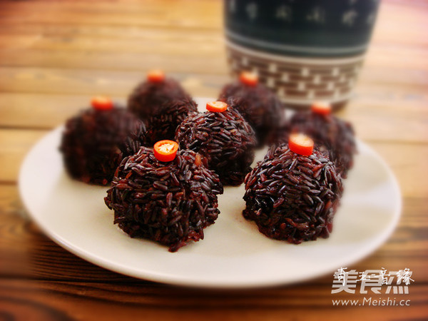 墨米也就是黑糯米,一定要提前泡一宿,那样口感才会软糯,蒸的时间长短根据丸子大小自己掌握!所有调料根据个人口味随意增减!