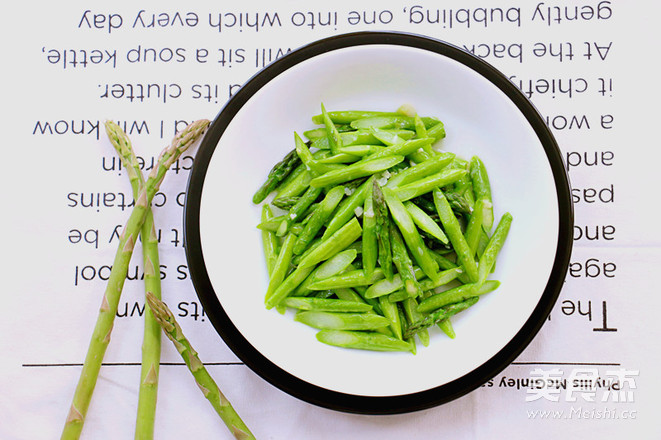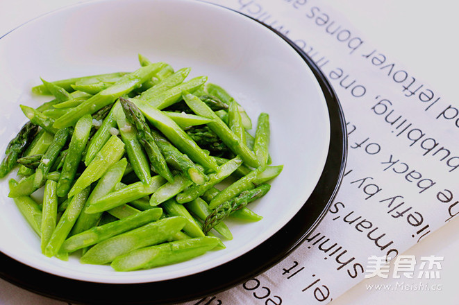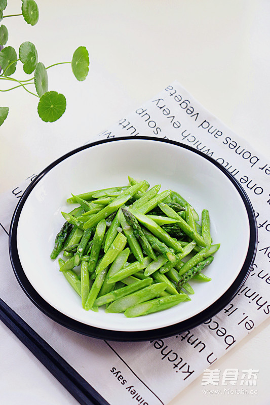1.芦笋洗净切掉老化的根部,斜切成小段,蒜切末备用