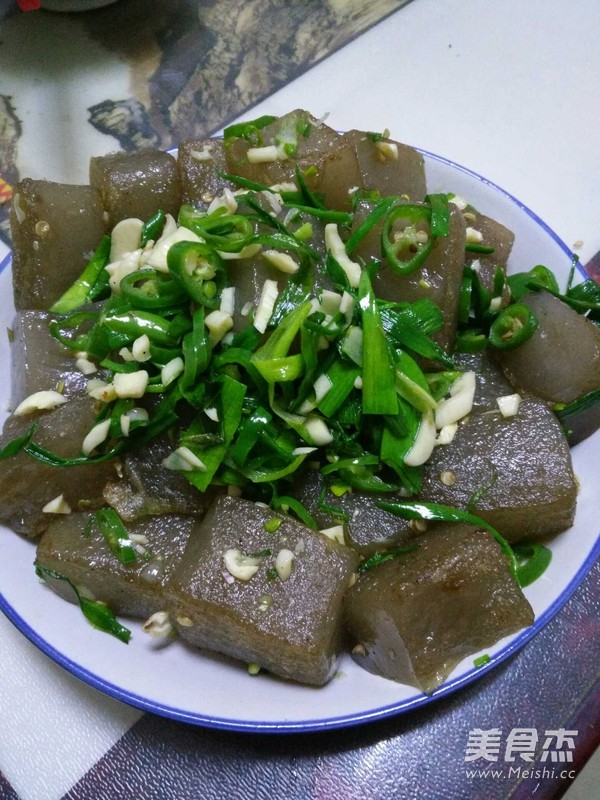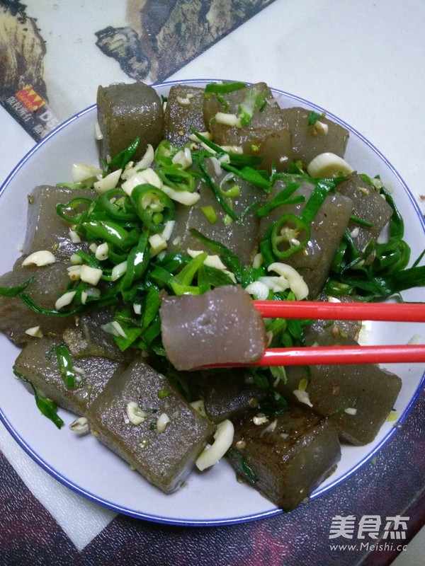 6.第二天,根据自己的喜好,切成大小的块。炒出来的红薯凉粉,口感Q弹Q弹的!