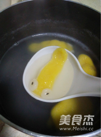 10.煮锅放水适量,水开后放入汤圆,水再次沸腾后加一勺凉水再次煮开,煮到汤圆全部浮起即可