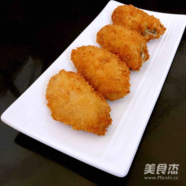4.沾好蛋液的鸡翅在均匀的裹上面包糠,最好裹的厚一点,这样炸出来的口感更脆哦