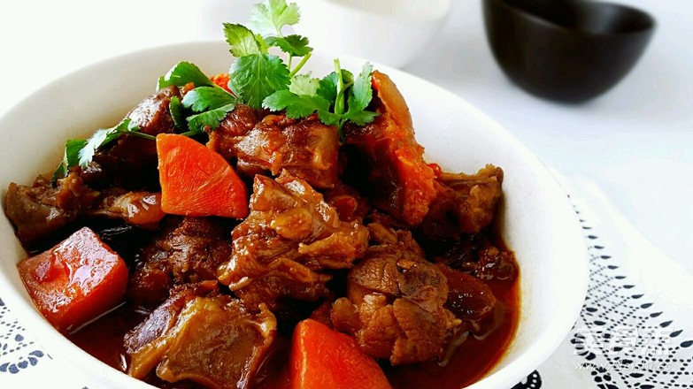 胡萝卜半根 黄酒2茶匙 姜4片 八角2个 桂皮1小片 干辣椒3个 草果半个 香菜2-3棵 郫县豆瓣1大汤匙 黄豆酱2大汤匙