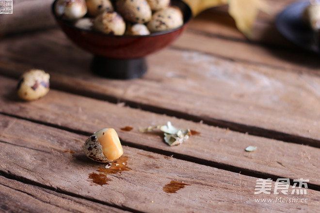 3.把煮熟的鹌鹑蛋轻轻捏破;