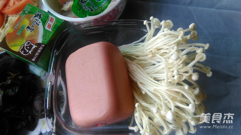 虾饺系列1斤 火腿肠1根 黑木耳1两 香菇1两 金针菇5两 海带1张 青菜1斤 豆腐皮4张 水4碗