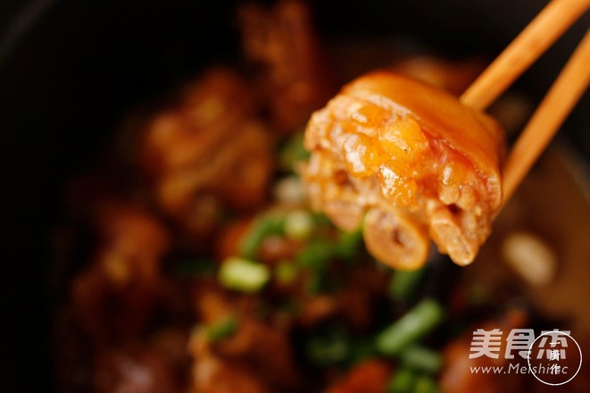 7.40分钟后,开盖,适当调整火力进行收汁工作,一锅猪脚就大功告成了。