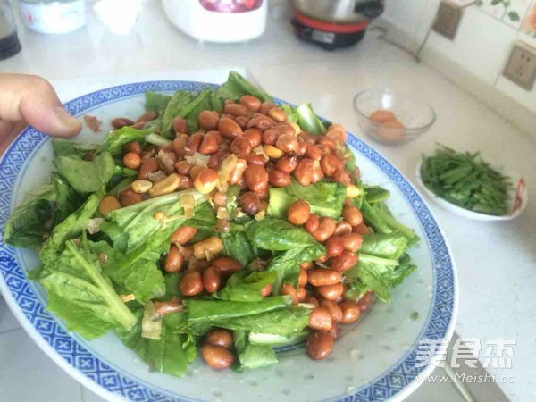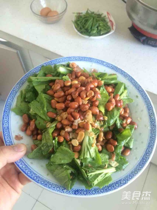 中午给奶奶做菜吃 主料 小白菜400克 花生仁(油炸)100克 辅料 油1小勺 精盐1小勺 生抽1汤匙 醋2汤匙 绵白糖1小勺 小白菜拌花生米的做法 1.将小白菜 洗净 切段 2.第一次发作品 家里有现成的炒熟的花生米 就直接上就行了 3.加盐一匙 4.生抽 和醋按口味加 5.少许白糖 6.用筷子搅拌 7.撒上花生米ok 烹饪技巧 家里有很多小菜 放假在家所以给奶奶做几道 老人么 都喜欢吃白菜土豆子啥的 第一次实战 心得就是手忙脚乱 希望可以帮到刚刚学做菜的朋友们