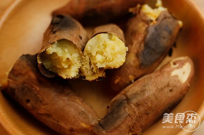 4.闻到香喷喷的烤红薯味道后,就可以出锅开吃咯。