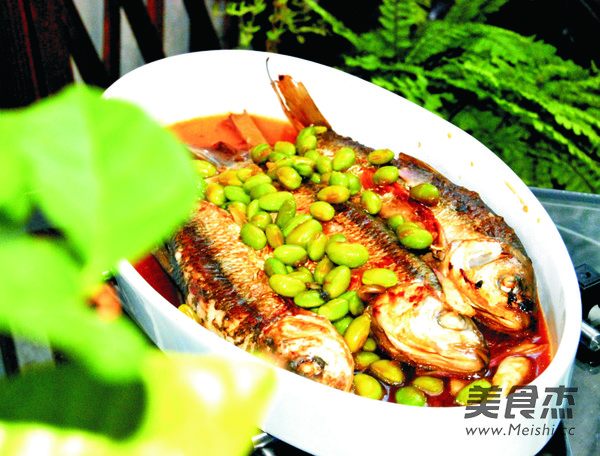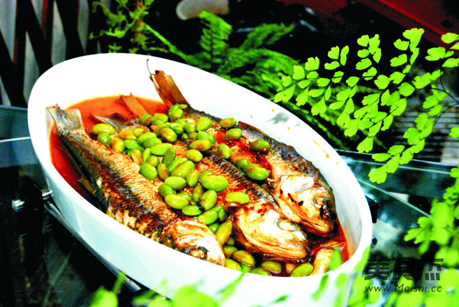 8.放入煎黄的华子鱼,烹入黄酒后,倒入调味汁,焖3分钟,略收汁