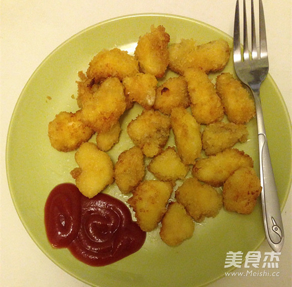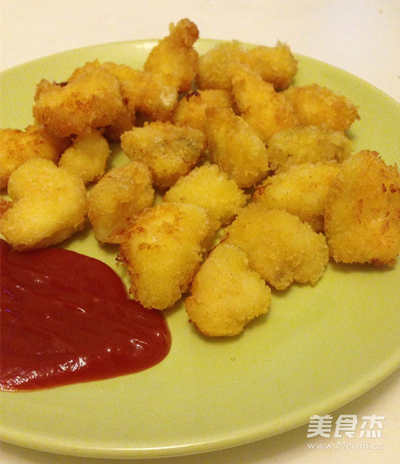 简单味美 主料 鸡胸脯肉150克 面包糠30克 鸡蛋清1个 鸡蛋1个 辅料 盐1茶匙 黑胡椒1茶匙 鸡米花的做法 1.鸡胸肉切成丁,洒上盐和黑胡椒,再倒入鸡蛋清液,腌制15分钟 2.鸡丁用筷子夹出来先裹面粉,然后蘸全蛋液,最后在面包糠里头滚,鸡丁的每一面都要粘上面包糠 3.倒油,烧热下锅,炸黄,要两面都黄,然后就可以起锅 4.捞起来的时候油很多,拿油纸垫在烤盘上,迅速吸油。然后装盘就可食用