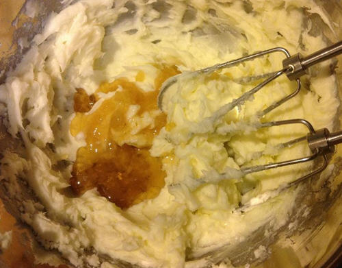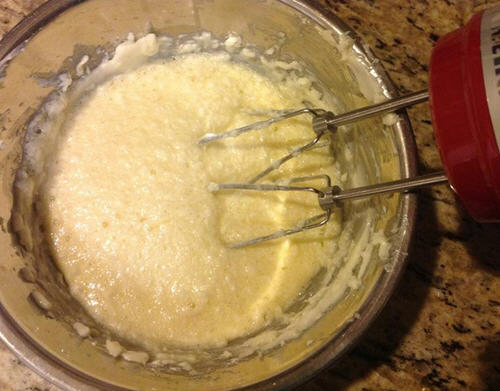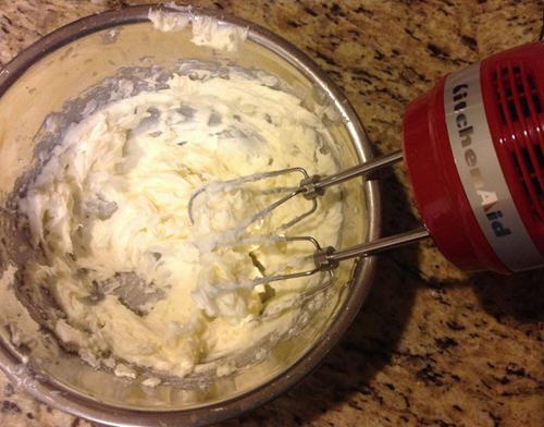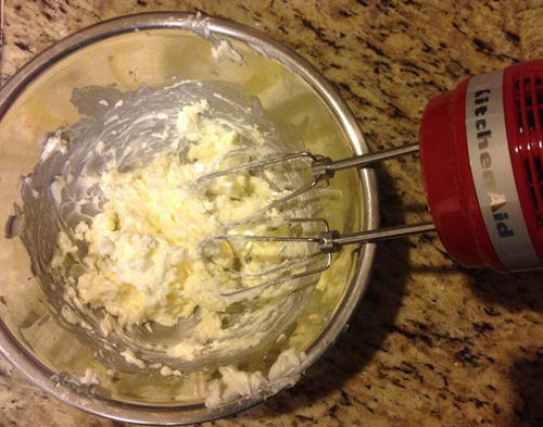 11、用电动搅拌器将奶油打发至颜色泛白。