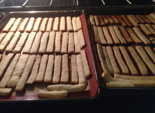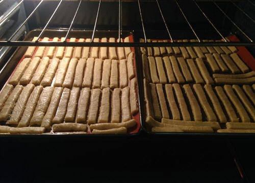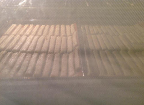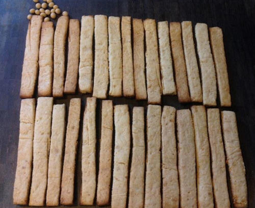 26、约烤 10-15 分钟;中间等豆渣棒烤到定型要随时翻面烤! 需注意每个烤箱温度不一, 故烘烤时间需视状况调整.各烤箱火力不同,要小心注意火力,因饼干很易焦黑的喔!