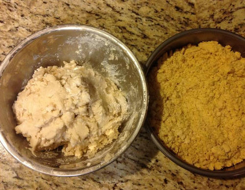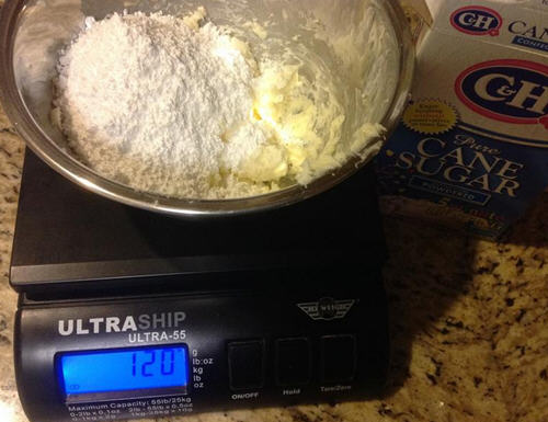 调料:豆渣320g,室温软化无盐奶油160g,白糖粉120g