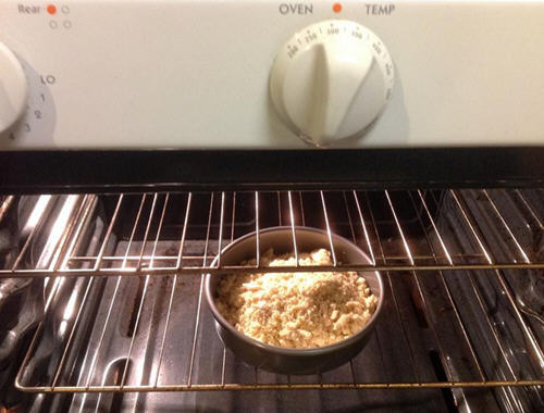 25、放入已预热好温度约 300 degrees °F =150 degrees °C 的烤箱内。