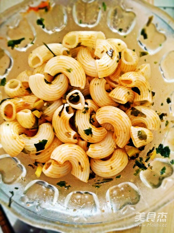1.说明一下,我们这个是两个小姑娘吃的量,所以并不算多,可以根据自己的饭量调整啦。100g通心粉放入加盐的开水中,煮八分钟