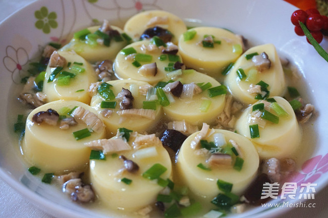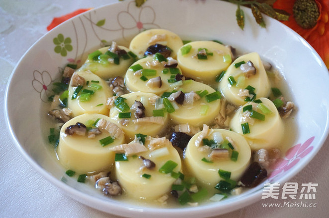 鸡蛋豆腐质地细腻肥嫩、味道纯正、鲜美可口、兼具鸡蛋和大豆的双重营养成分。 主料 鸡蛋豆腐120克 辅料 香油10克 食盐2克 香菇6克 腐竹15克 香葱10克 淀粉5克 鸡精3克 浇汁鸡蛋豆腐的做法 1.鸡蛋豆腐去外包装,然后切小段 2.码上盘上,入锅蒸4-5分钟 3.腐竹、香菇泡发后切碎,香葱切碎备用 4.炒锅放入100ML的清水,烧开后把放香菇、腐竹、葱末再烧开,再放入食盐、鸡精和香油拌匀,后兑入水淀粉勾芡关火 ,再淋入适量的香油拌匀 5.把煮好的浇汁淋上先前蒸好的豆腐面上即可 烹饪技巧 无技巧。