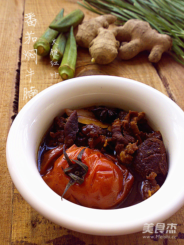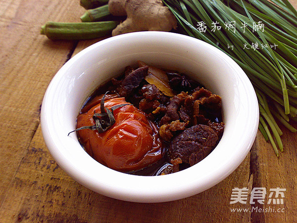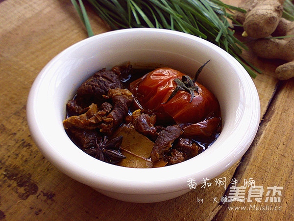 番茄焖牛腩是道非常经典味美的家常菜。 主料 牛腩500克 番茄2个 水3大碗 辅料 盐1小匙 糖1匙 老抽3匙 生抽2匙 米酒3匙 丁香3克 姜15克 蒜20克 桂皮5克 香叶5克 花椒3克 番茄焖牛腩的做法 1.备材料 2.牛腩用沸水出水,捞起待用 3.把所有调味料与其他香料放锅内 4.投下牛腩与番茄 5.加盖大火煮沸后转小火焖煮2小时以上 6.待牛腩煮至软熟,汁收9成干,关火即可上碟