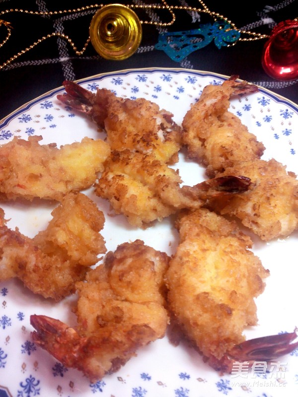 5.将虾仁依次粘上淀粉备用,鸡蛋打散