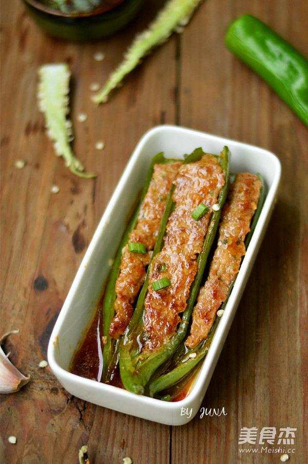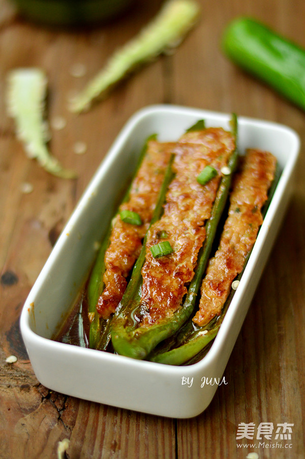 7.锅里放适量油,烧热后放入酿好的尖椒,两面都煎香