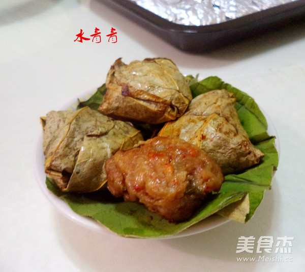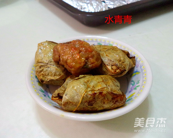 香烤荷叶肉丸,胡椒香味。猪肉剁成肉泥加盐,胡椒粉,辣椒粉,香葱,生粉拌匀。再用荷叶一个一个包起,再包一层锡纸放进烤箱烤香。