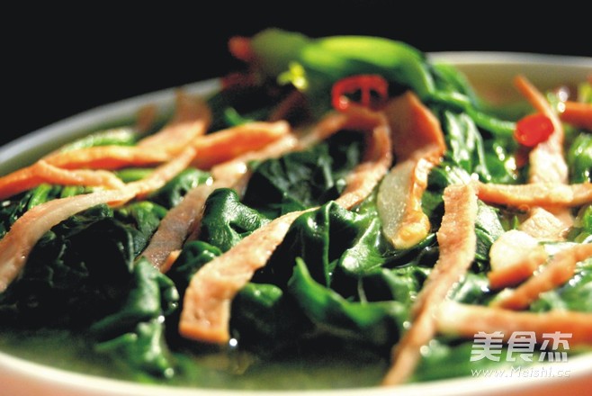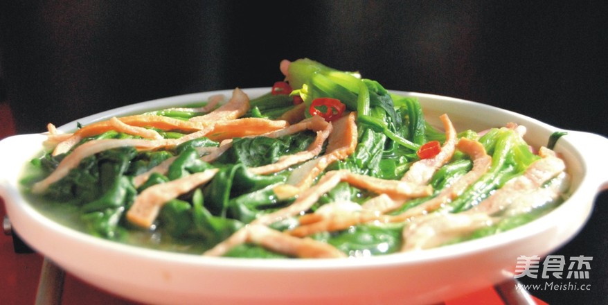 6.色泽艳丽.口味鲜美鸡汁菠菜就可以开吃了~