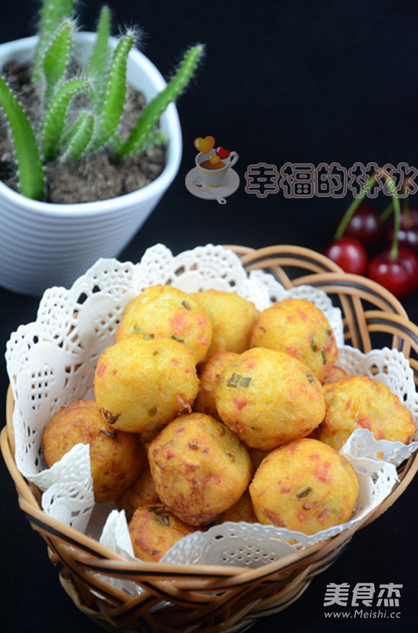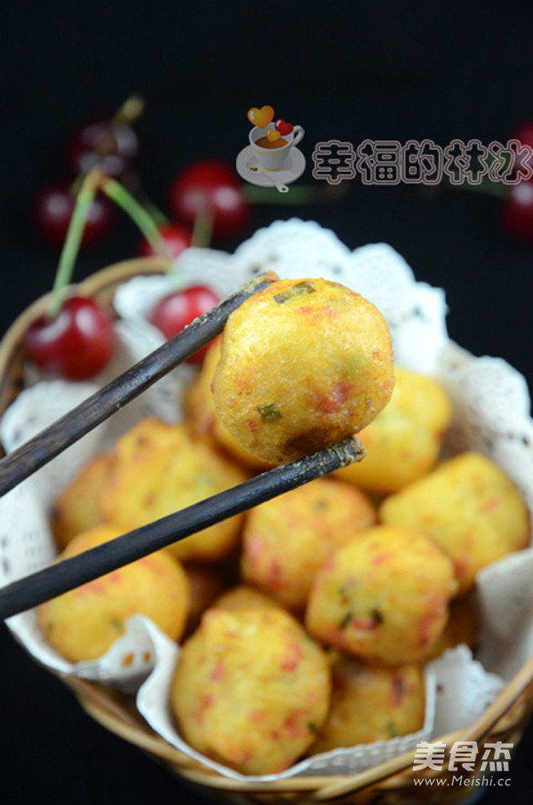 最近迷上了用土豆来做菜哈,主要是家里的存货比较多,而且最近就我们娘俩儿吃饭的时候比较多,所以有时候就做上一两个孩子喜欢吃的菜一顿饭就OK了。土豆其实不是孩子爱吃的蔬菜,但是各种丸子各种饼却很讨小朋友的喜欢,所以这次决定用土豆泥来做这个丸子,里面加进了小孩子喜欢的火腿,再加上香葱的味道让这个丸子变得很香很诱人,不管是当菜吃还是直接当主食或者当零食都是不错的选择