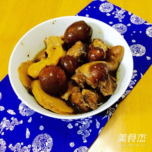 16.把猪脚加入砂锅内,盖上盖煲大约120分钟
