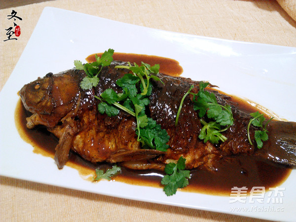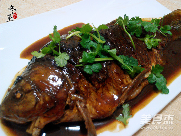 9.待汤汁粘稠时浇在鱼上,撒上香菜段即可