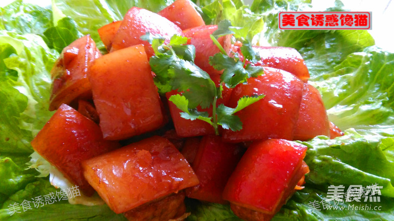 1、糖和油的比例1:1为佳。 2、用冰糖炒出来的糖色分外透亮,光泽度最好。 3、用小火炒制,尤其是最后阶段,火太大易炒焦,颜色接近棕红色时就要关火,否则就过了,就变苦了。 4、用压力锅蒸制,只需30分钟即可(用普通炒锅炖煮至少需90分钟),省时、省力、省能源。