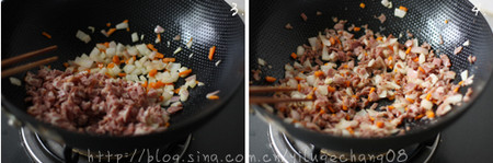 主料:胡萝卜,洋葱,培根,土豆泥(放入少量盐和黑胡椒粉拌匀)
