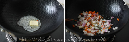 1、黄油放入锅中烧融化。