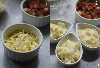 2、把土豆泥放入烤碗。