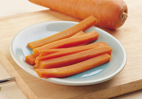 2、水煮滚后,将所有调味料混合煮匀,放入作法1的红萝卜条,以中小火煮至红萝卜条约6分软后熄火,捞出即可。