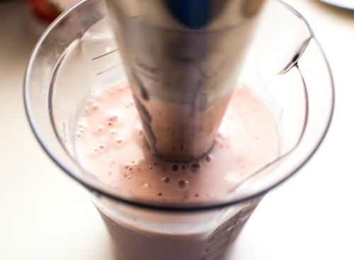 将水蜜桃跟优格、牛奶,用手持搅拌棒打成奶昔,浓郁诱人的蜜桃及酸甜的优格非常match,冰冰凉凉的口感滑顺绵细,馥郁饱满的蜜桃香气萦绕在口中,顿时将炎热的暑气注入了一丝清凉感呢!