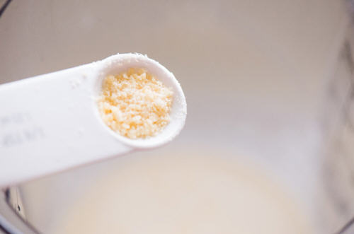 1、将鲜奶油、糖、海盐、cheese粉加在一起,然后用电动打蛋器中速搅打1分钟即可。