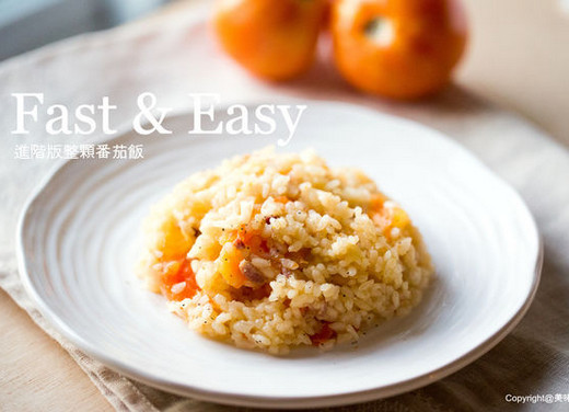 3、加入一颗完整番茄,放入电子锅用一般炊饭模式煮熟,再闷10分钟。