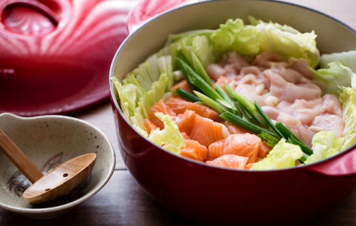 主料:鲑鱼1块(约300g),鸡胸肉1块(约300g),大白菜1/2棵(大概是7-8片)